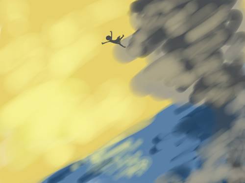 夢裏充斥着巨大的漆黑的機器、夾雜着煤灰的空氣 、被石油污染的海。在夢裏追逐着什麼,逃避什麼,我已不記得,只依稀留下奔跑、飆摩托、機器裏巨大的齒輪之類的朦朧的畫面。最後一幕,我站在海邊一個高聳入天的巨型機器的頂端,海風吹得我搖搖欲墜。看着身後的夕陽,我摔向漆黑的海面。